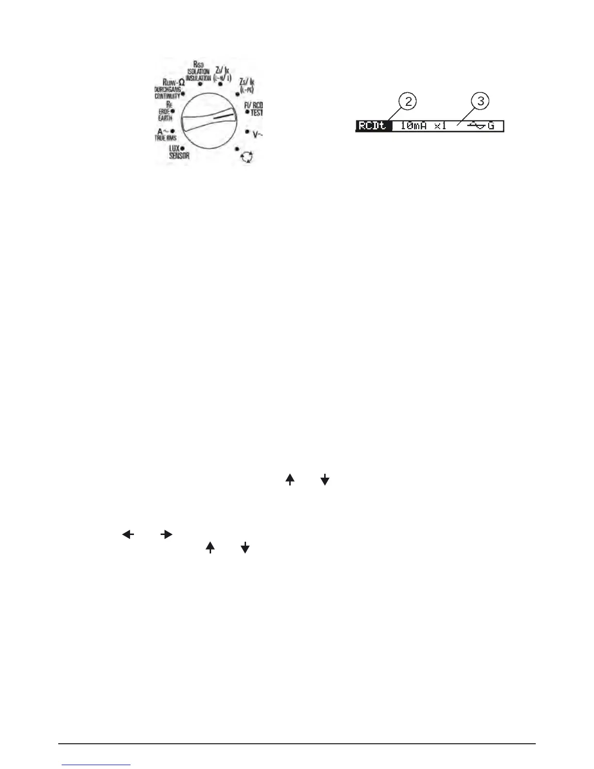 The following measurements can be selected with the function selector switch: