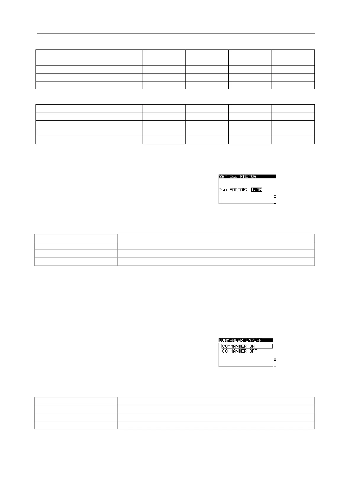 In this menu, it is possible to set the Isc factor