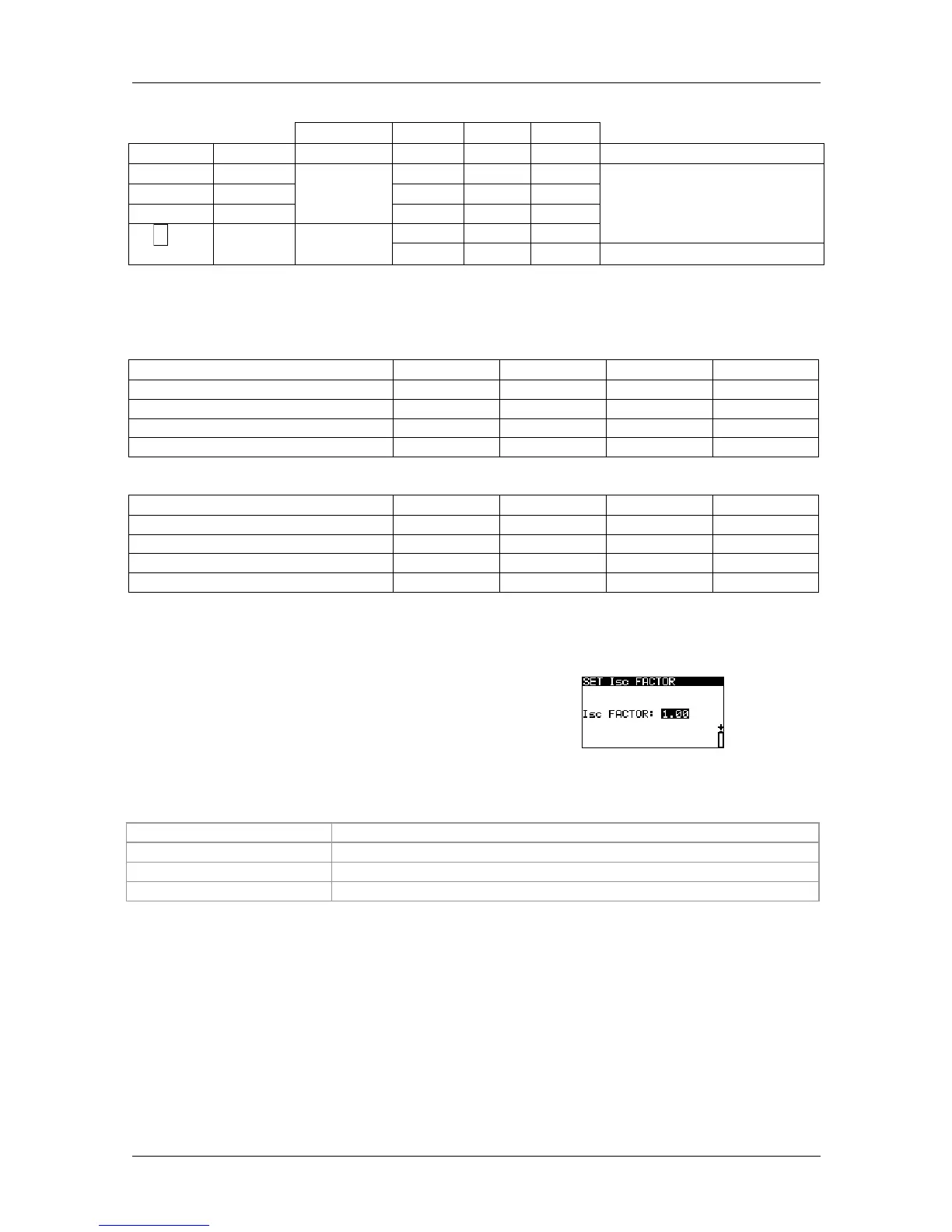 In this menu, it is possible to set the Isc factor