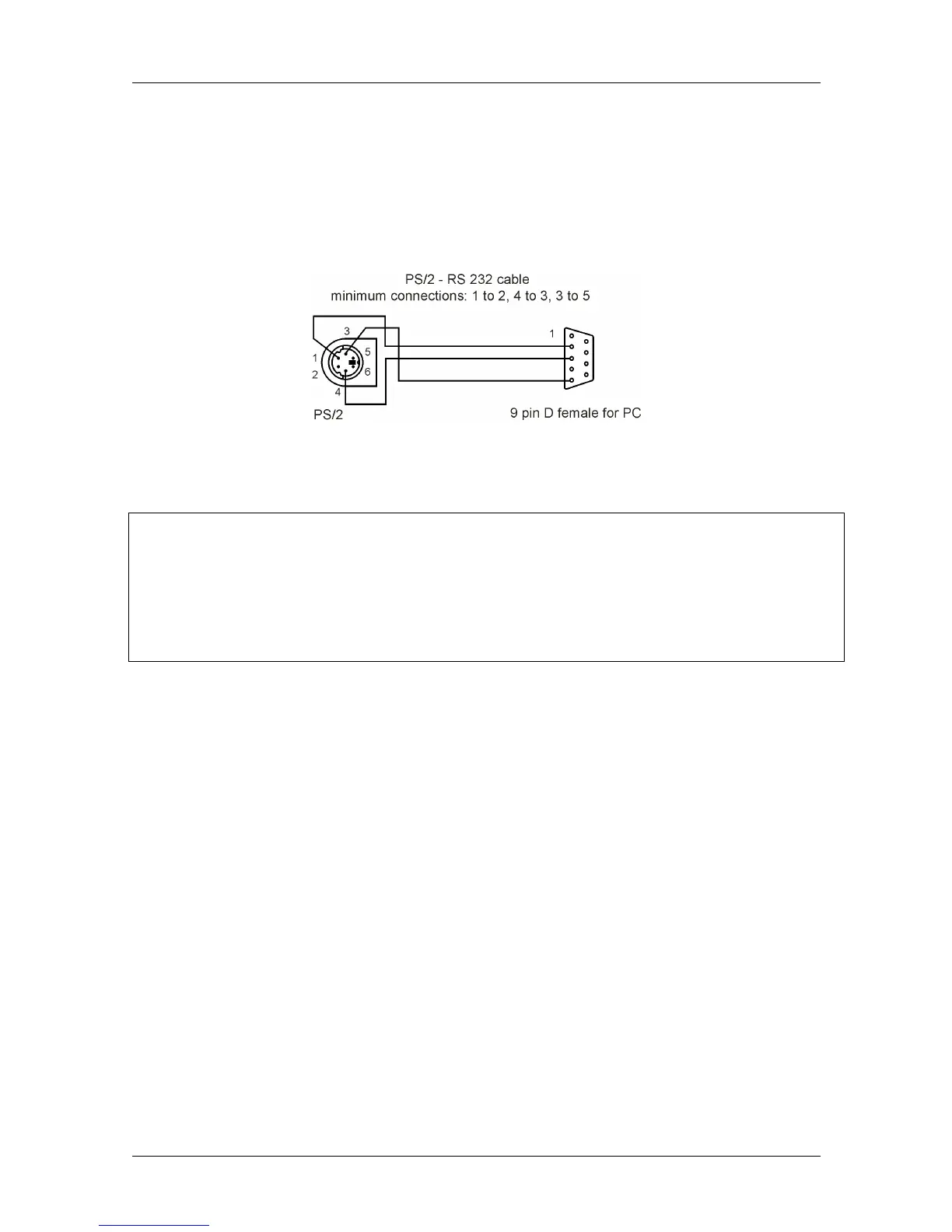 RS232 interface: Connect the serial PS/2-RS232 interface cable to a COM port of the PC