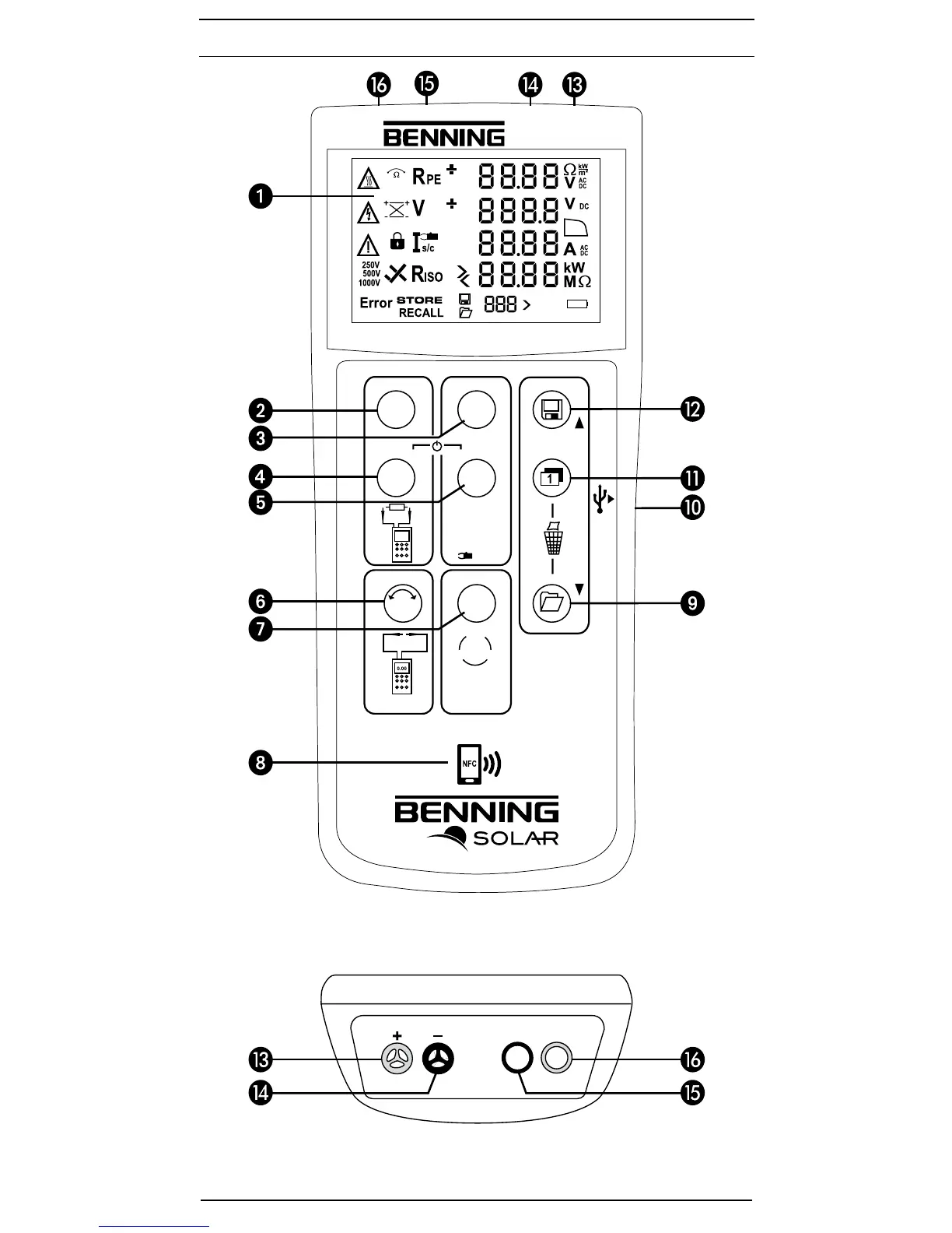 Benning PV 2 - Appliance Front Face Overview; Top Side Device Features