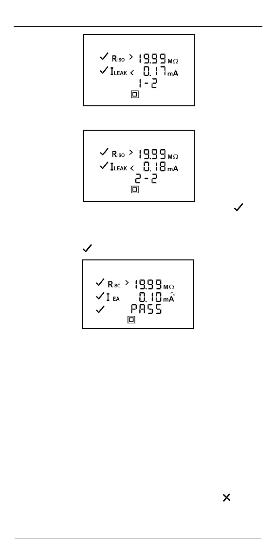 - Die Prüfung gilt als bestanden, wenn das Symbol „PASS“ im Display erscheint.