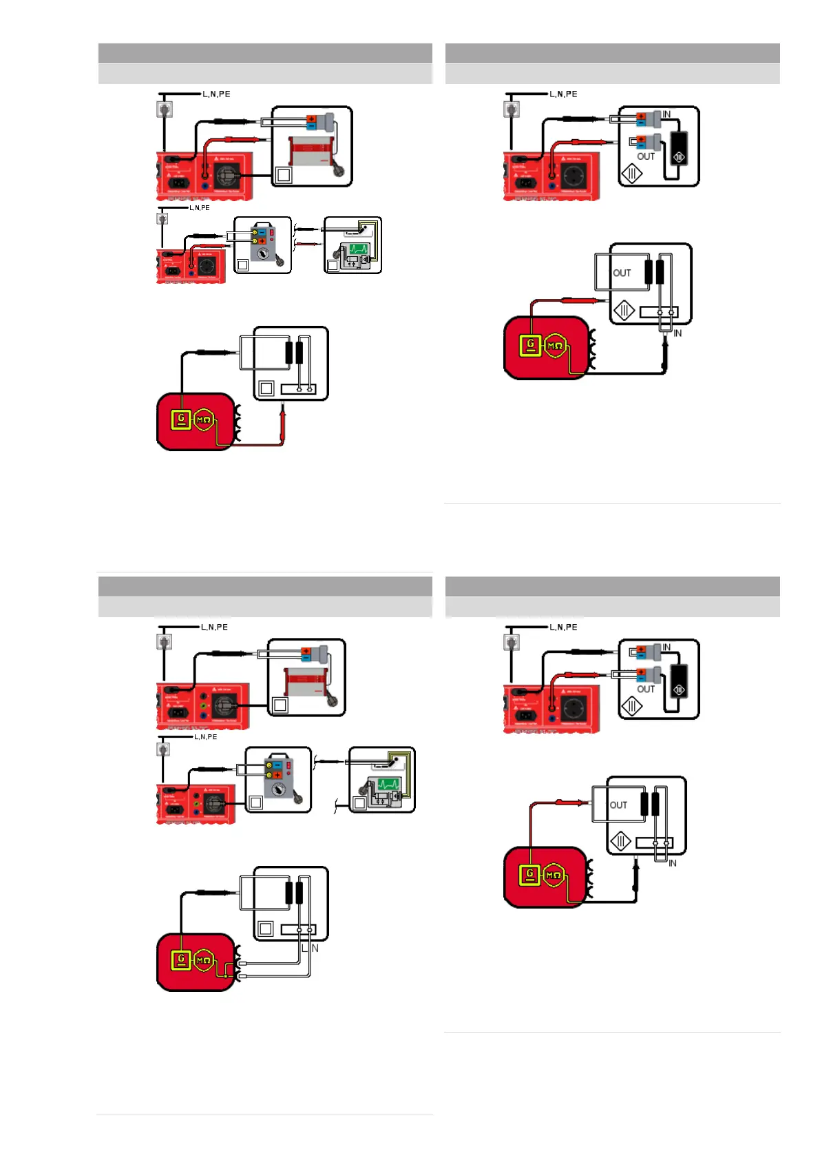 The testing voltage is applied to the PE socket. The insulating