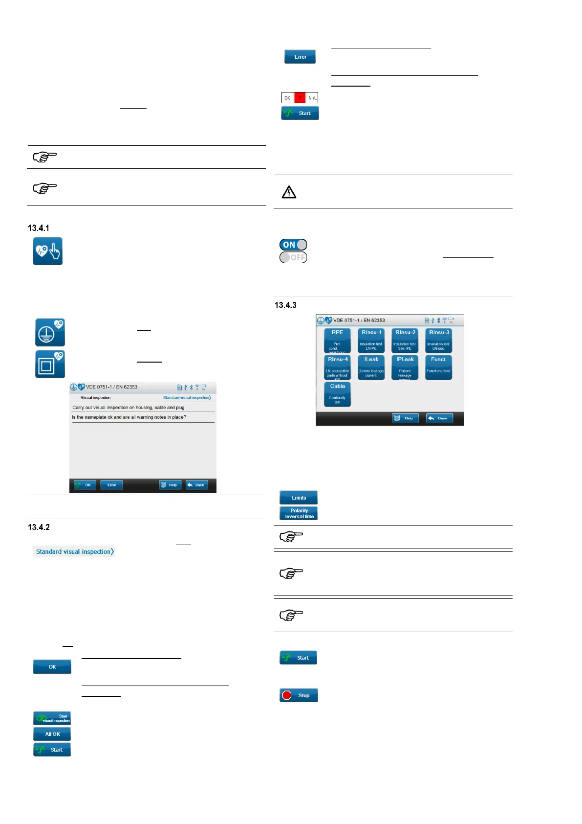 Manual testing according to VDE 0751-1 is used for tests of