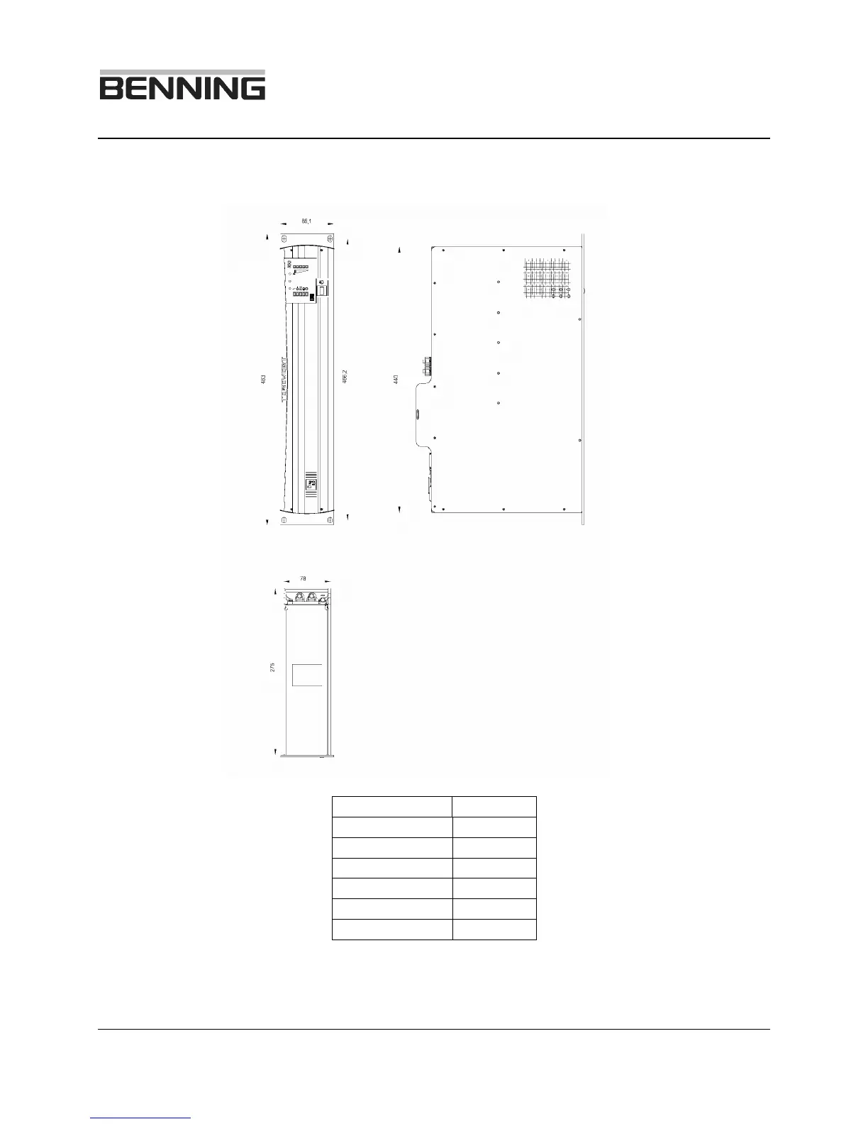 Benning Tebevert 1000 - Unit Dimensions and Layout