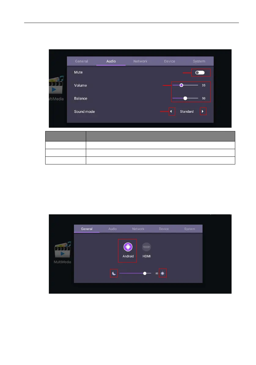 Press MENU on the remote control or MENU on the front panel to enter the General