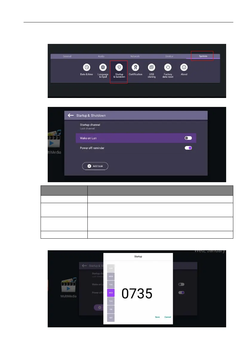 Startup channel Select a startup input after powering on the display.