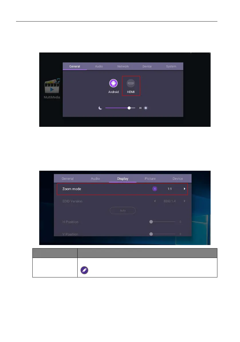 • For more information about Audio settings (HDMI), please refer to Audio settings