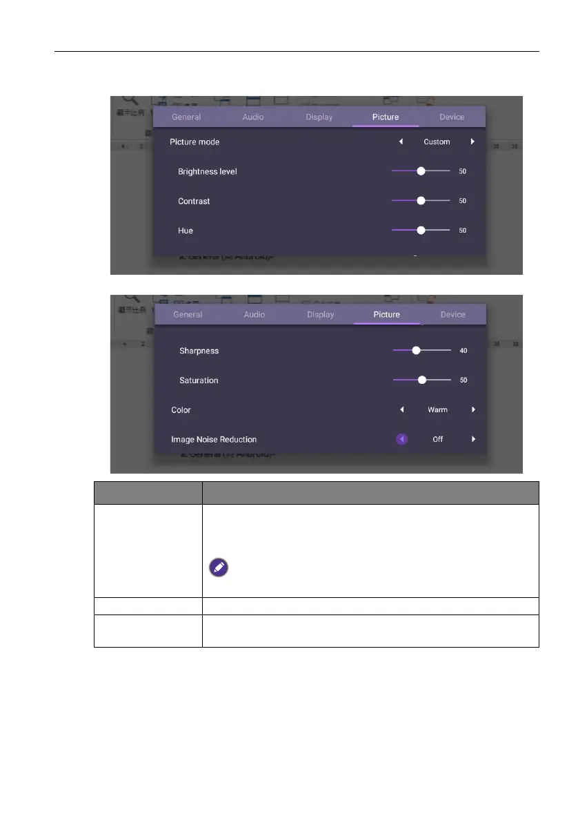 also adjust Brightness level, Contrast, Hue, Sharpness,