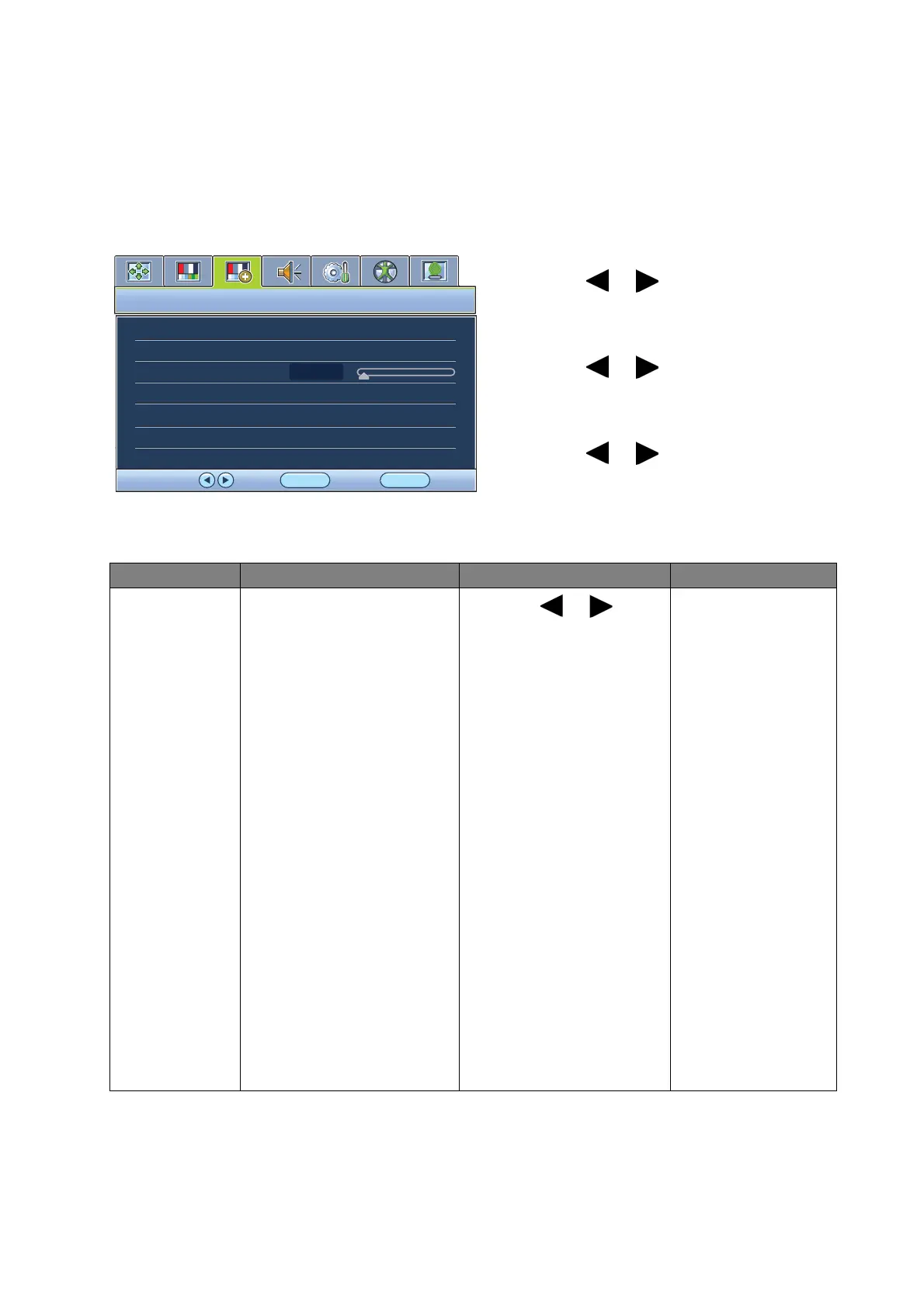 Available menu options may vary depending on the input sources, functions and settings. Menu