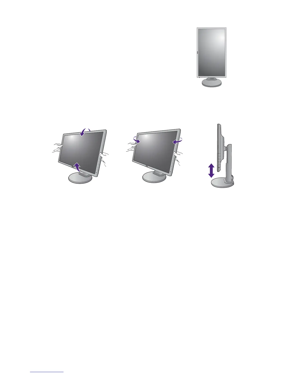 You may position the screen to the desired angle with the monitor tilt, swivel, and height