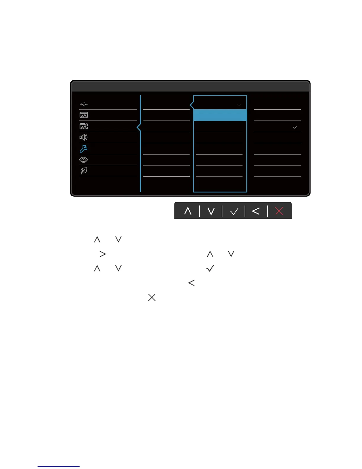 3. Select to go to a sub menu, and then use or to select a menu item.