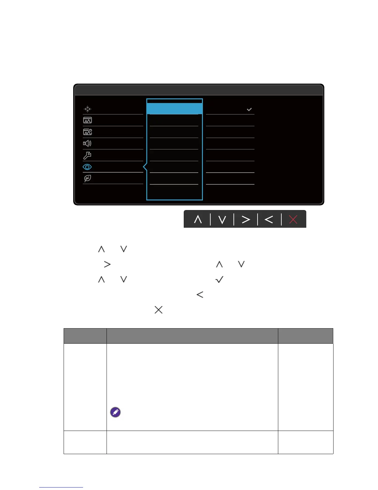 4. Use or to make adjustments, or use to make selection.
