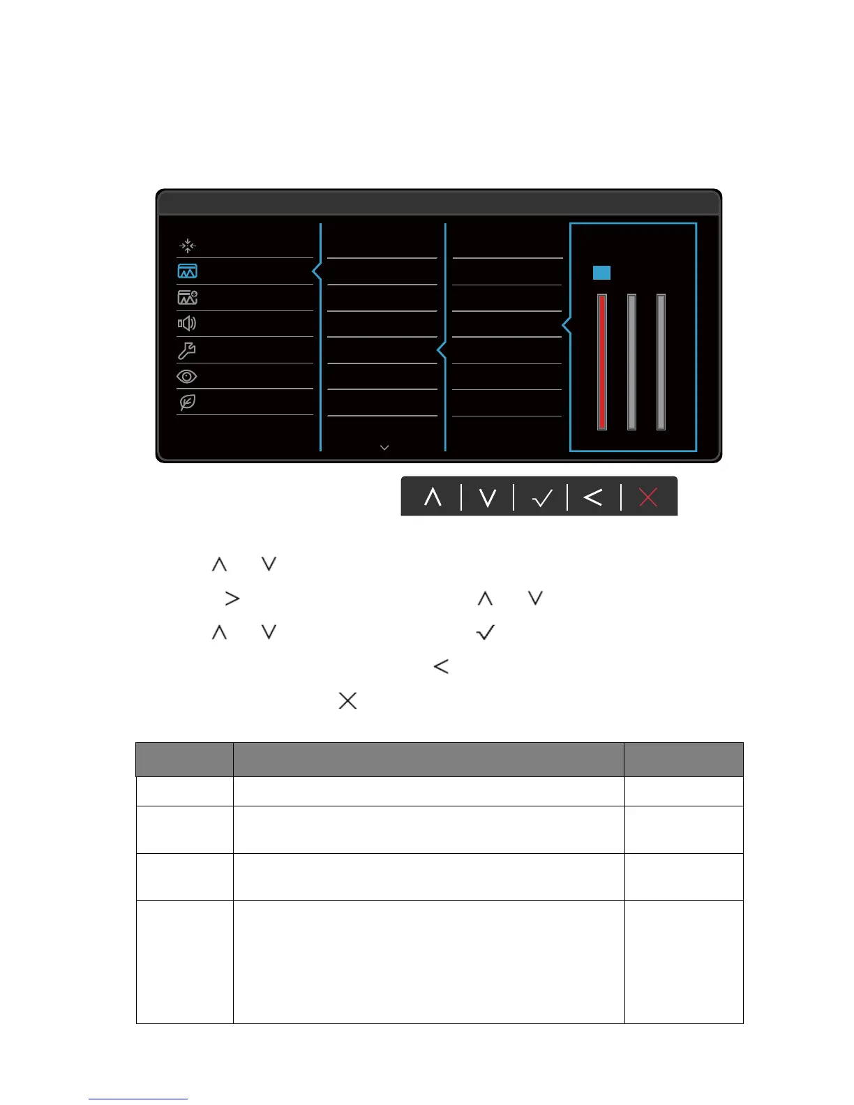4. Use or to make adjustments, or use to make selection.