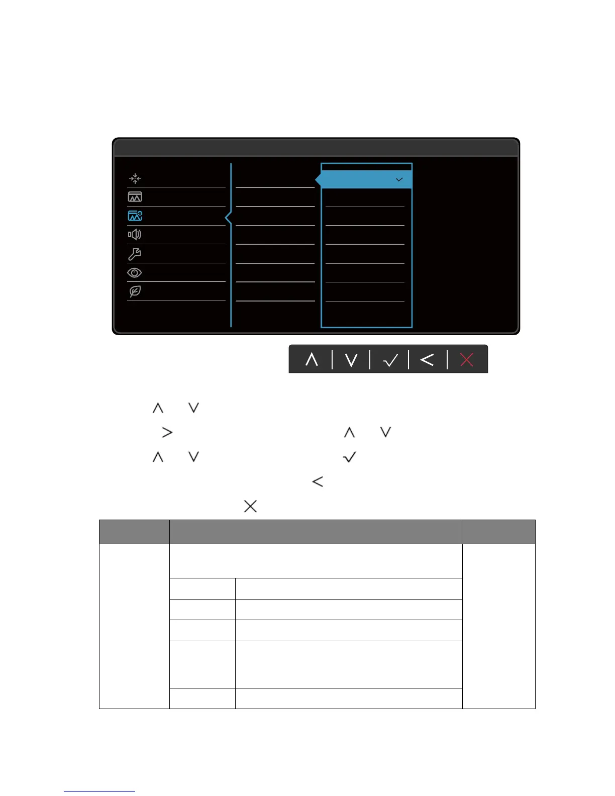 4. Use or to make adjustments, or use to make selection.