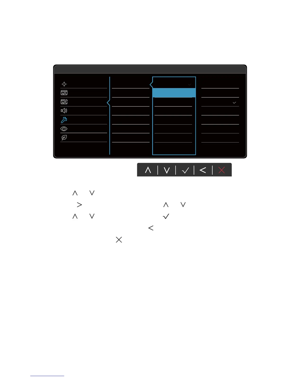 3. Select to go to a sub menu, and then use or to select a menu item.