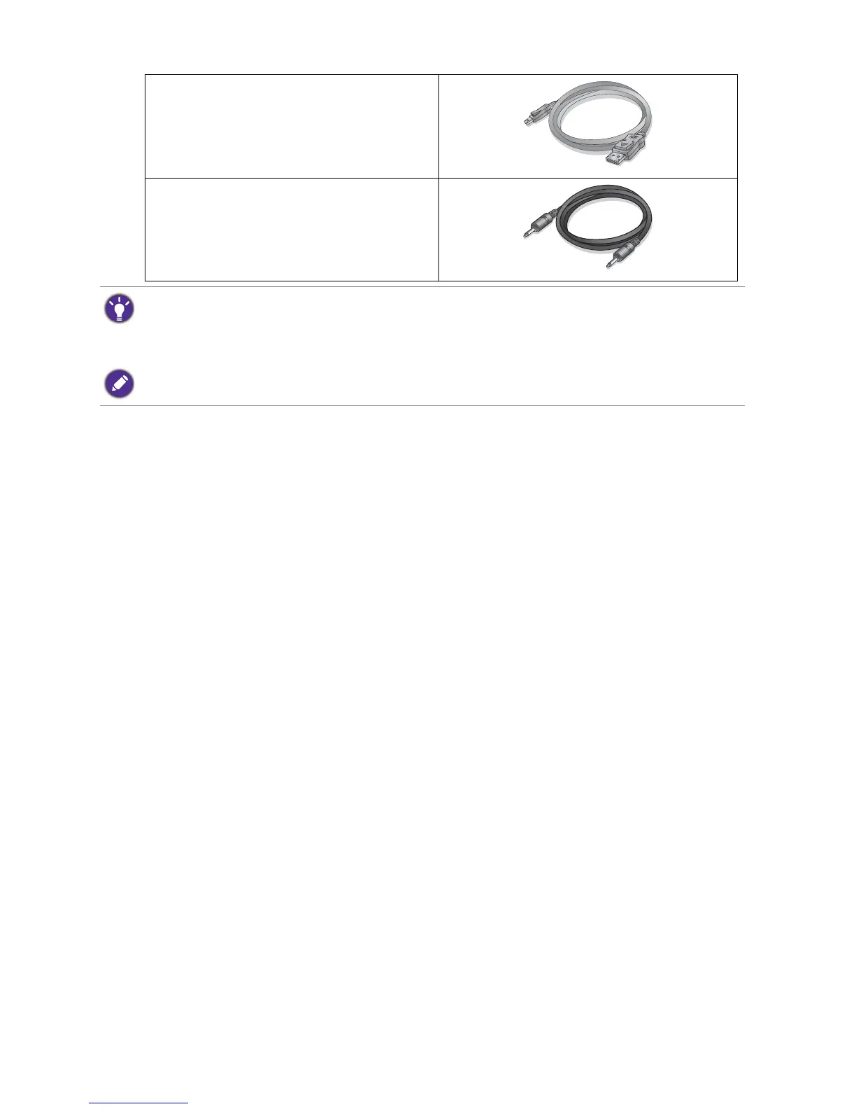 for your region. For cables that are not supplied with your product, you can purchase them separately.