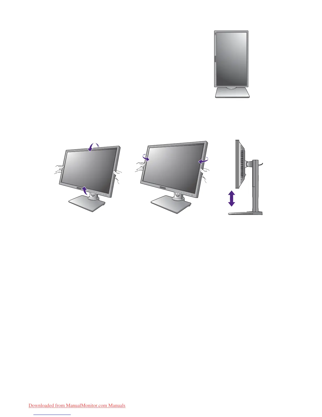 You may position the screen to the desired angle with the monitor tilt, swivel, and height