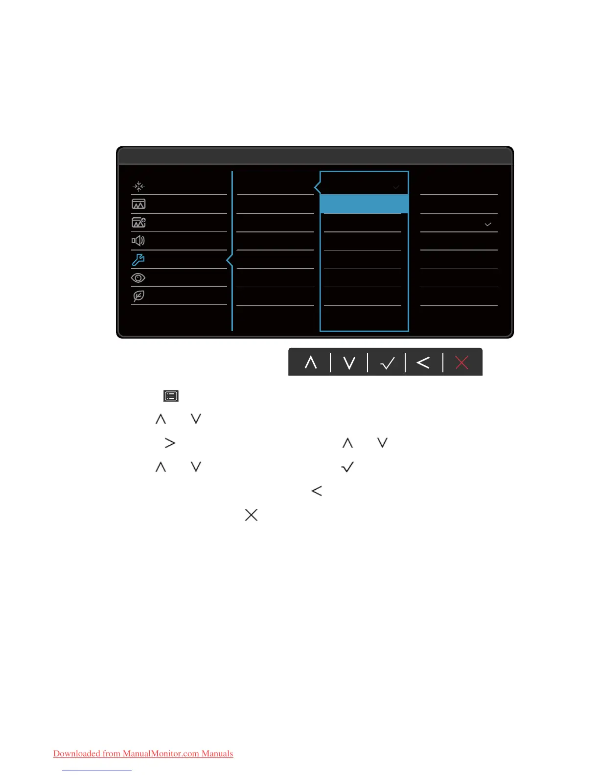 4. Use or to make adjustments, or use to make selection.