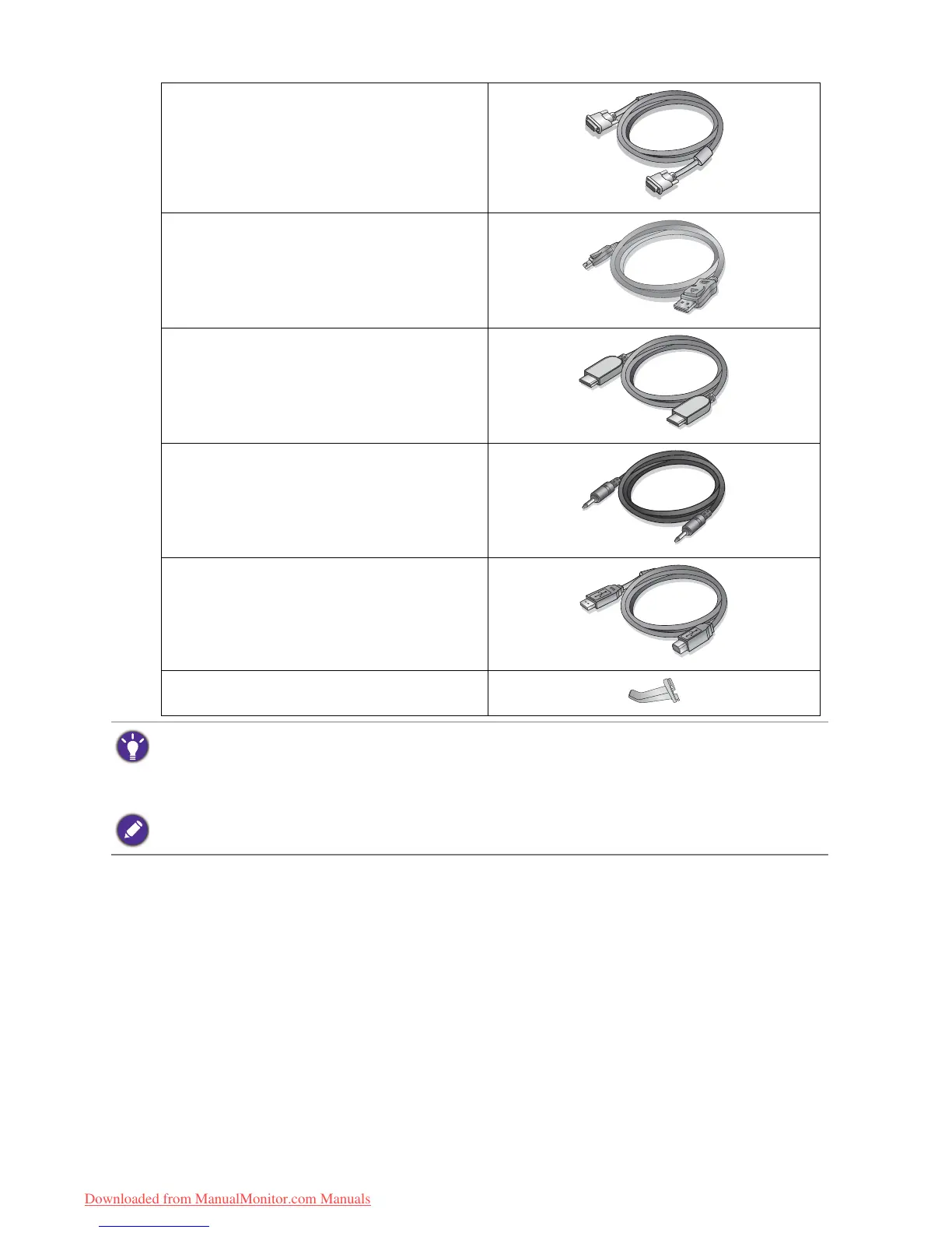 for your region. For cables that are not supplied with your product, you can purchase them separately.