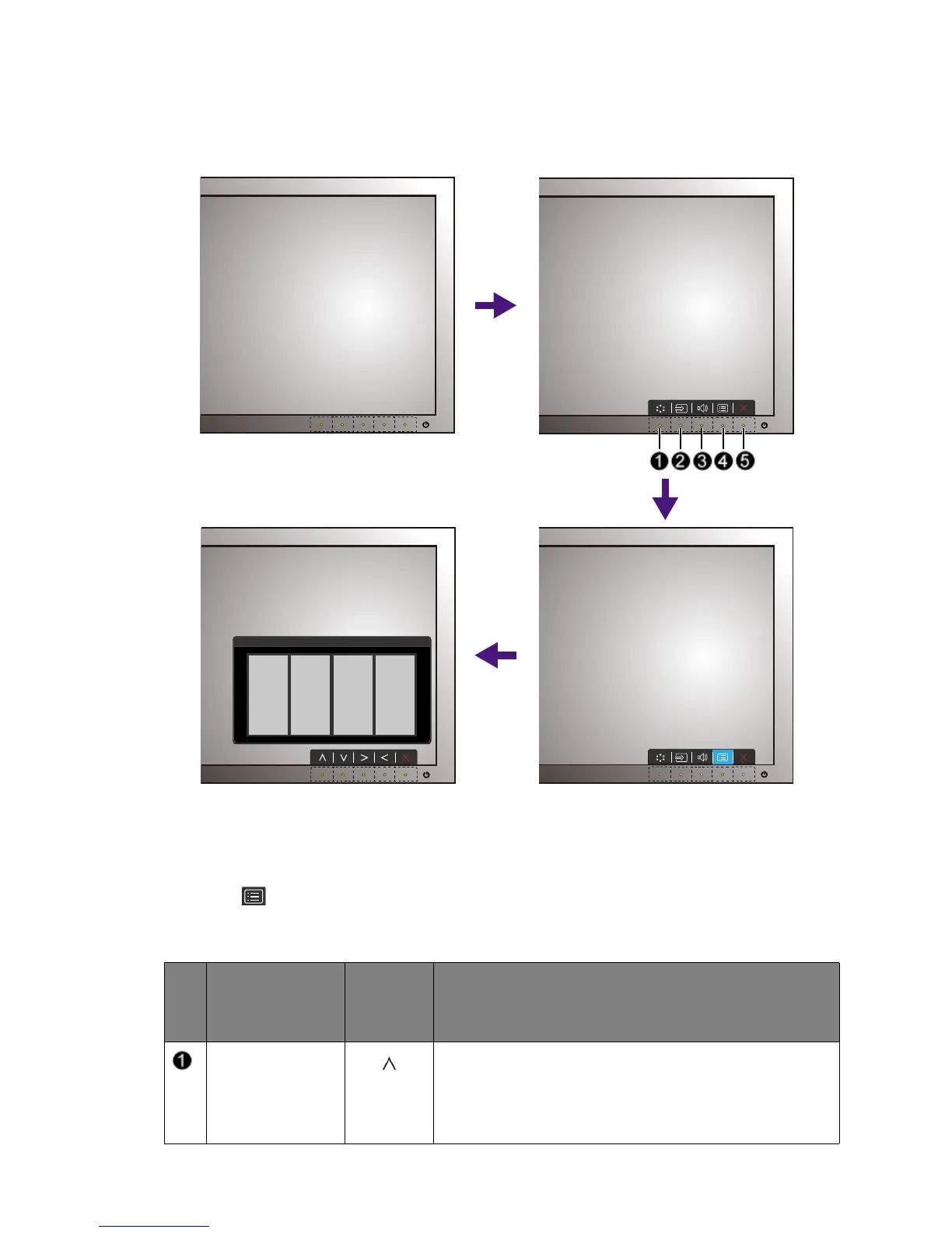 All OSD (On Screen Display) menus can be accessed by the control keys. You can use the OSD