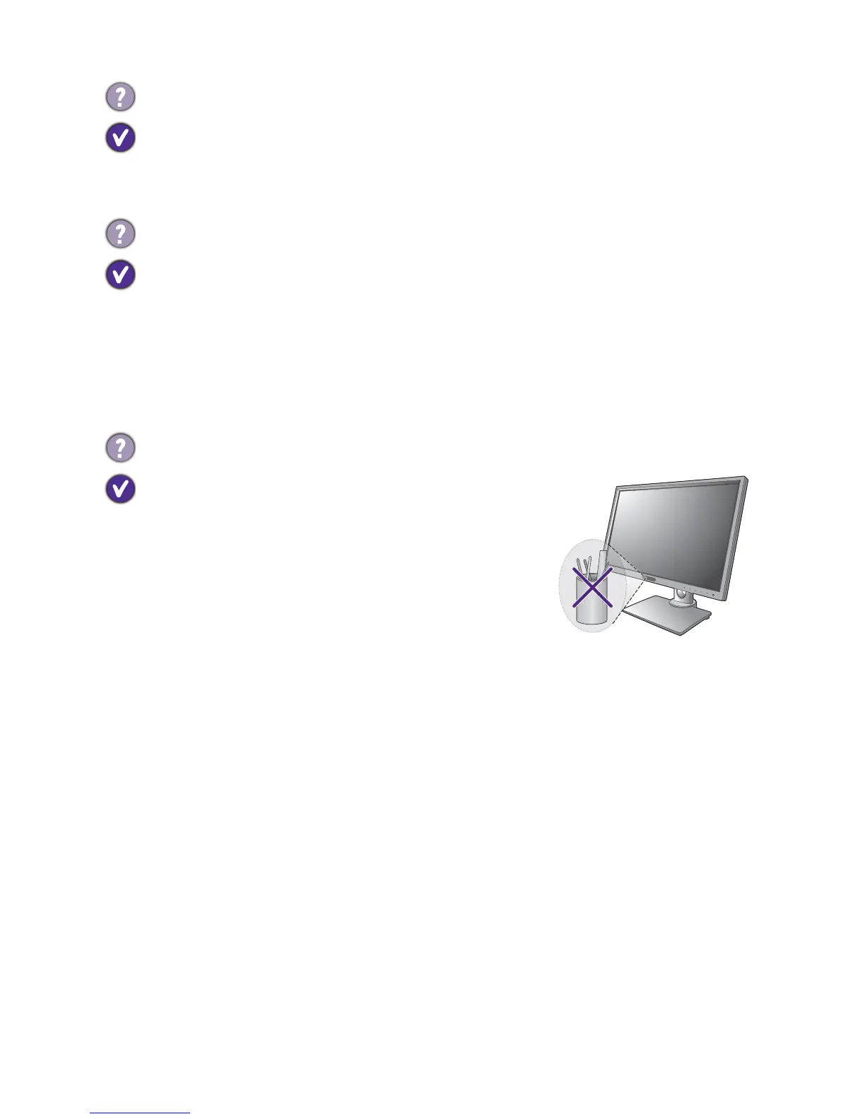 • Remove your headphone and/or external speakers. (If they are connected to the monitor,