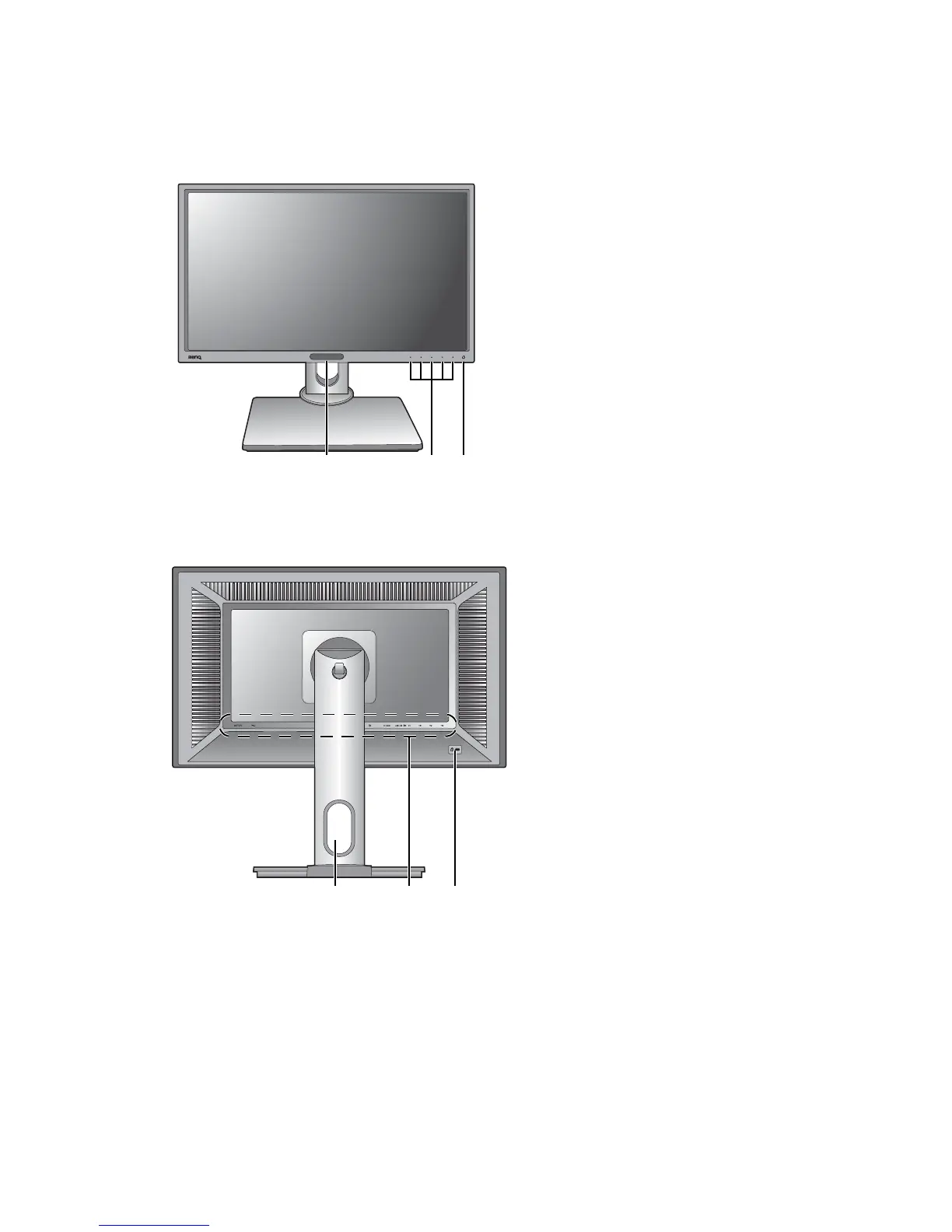 BenQ BL2420U - Getting to Know Your Monitor; Front View; Back View