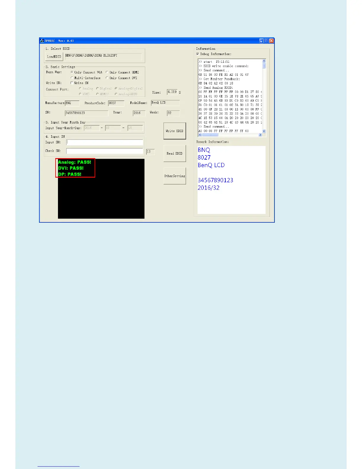 5.6. Start to writing. Click “write EDID” to start writing. When The green “PASS” appear, the process is finished.
