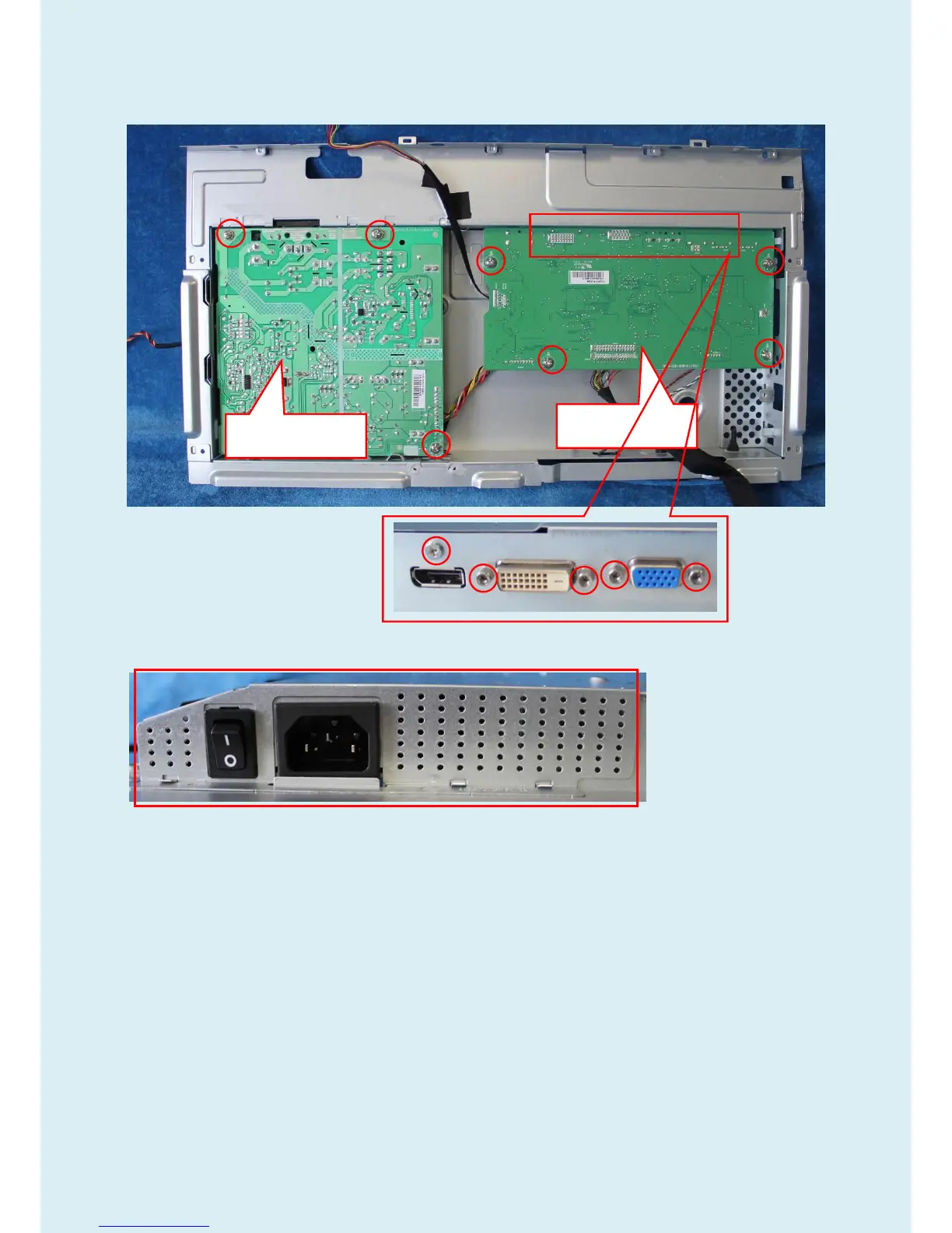 Connect main board and power board; Lock the main board and power board on the mainframe.