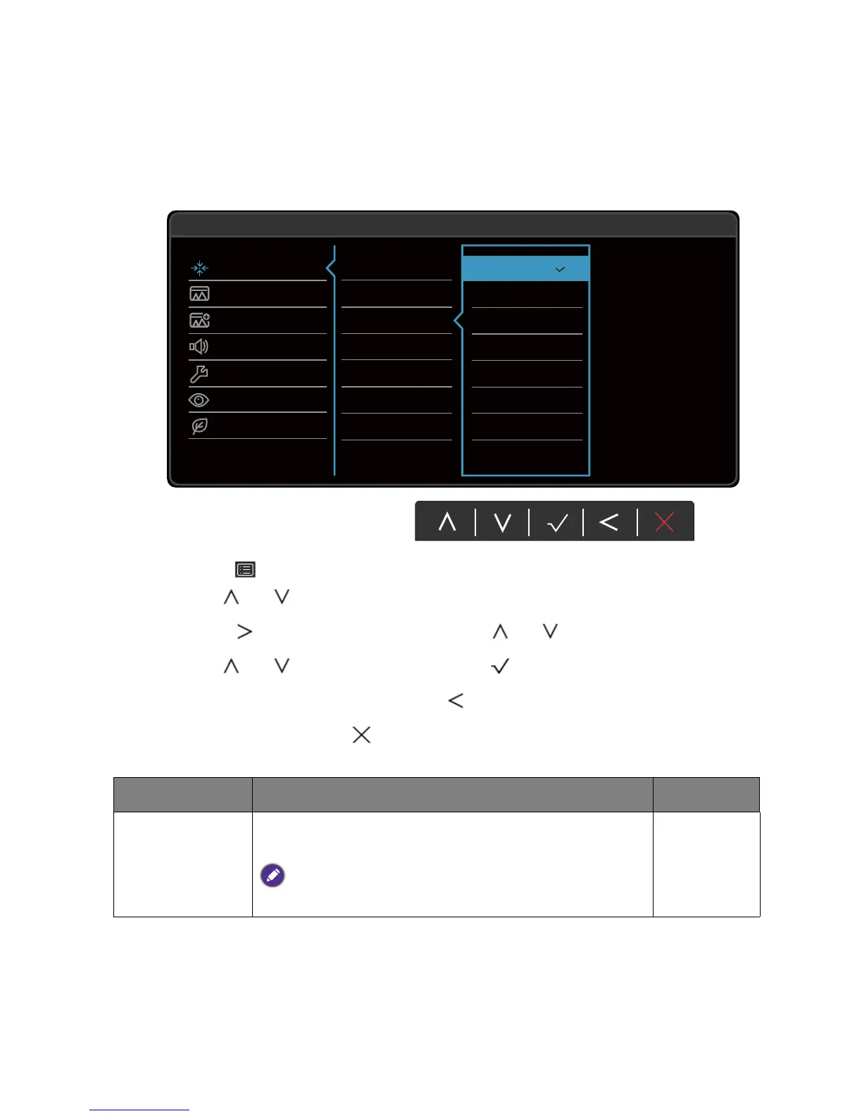 disabled and the corresponding OSD icons will disappear. For models without certain