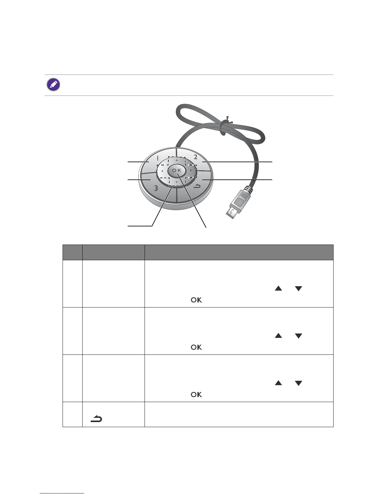 1. Controller Key 1 • Press to switch to sRGB (Picture Mode).