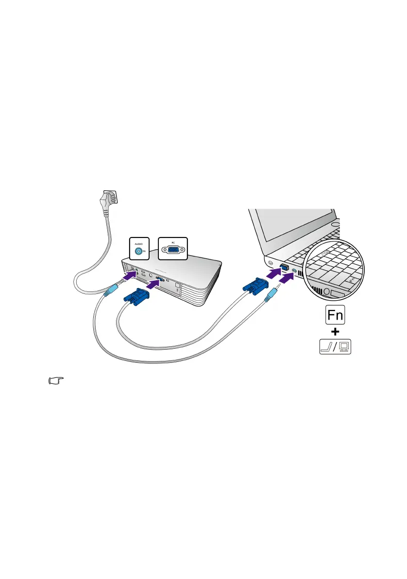 3. If you wish to make use of the projector’s built-in speakers, take a suitable audio cable
