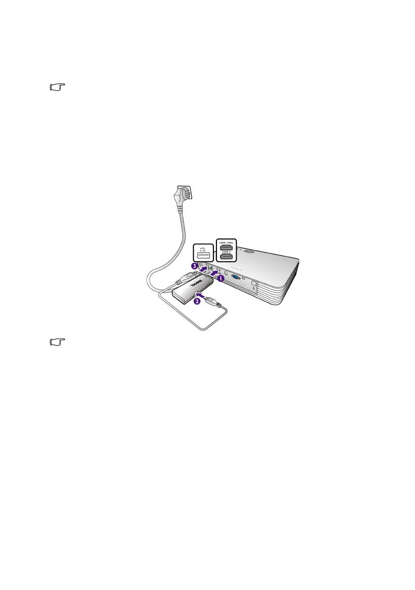 • The BenQ QCast dongle can be activated via either the MHL or HDMI input port on your