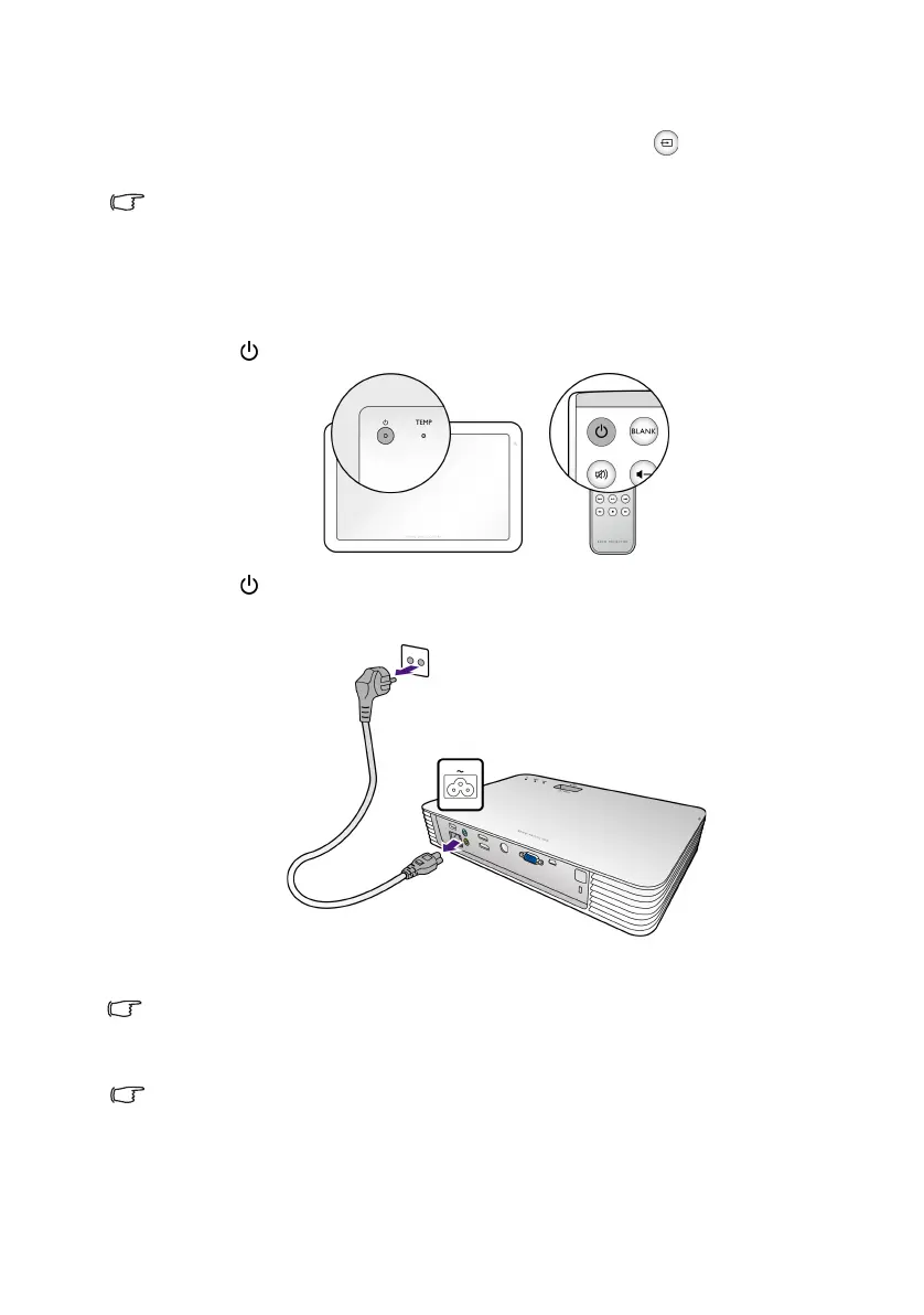 If the projector will not be used for an extended period, unplug the power cord from