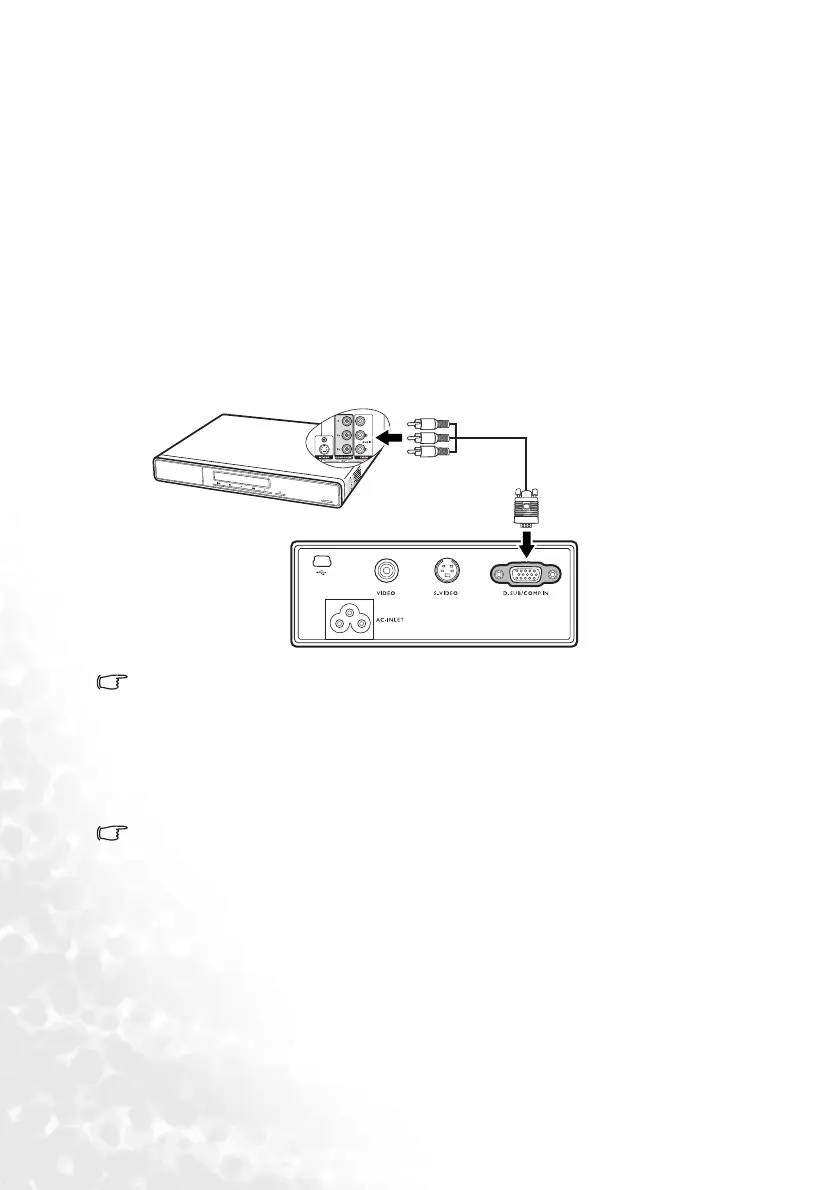 To connect the projector to a Component Video source device
