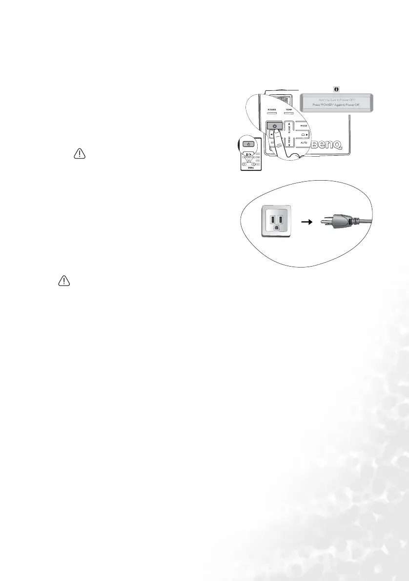 • Do not unplug the power cord before the projector shutdown sequence is complete or during