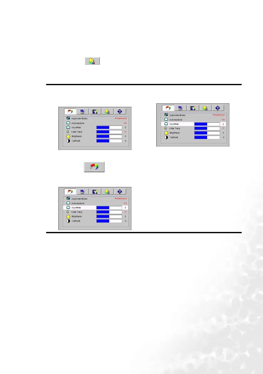 4. Adjust Keystone values by pressing