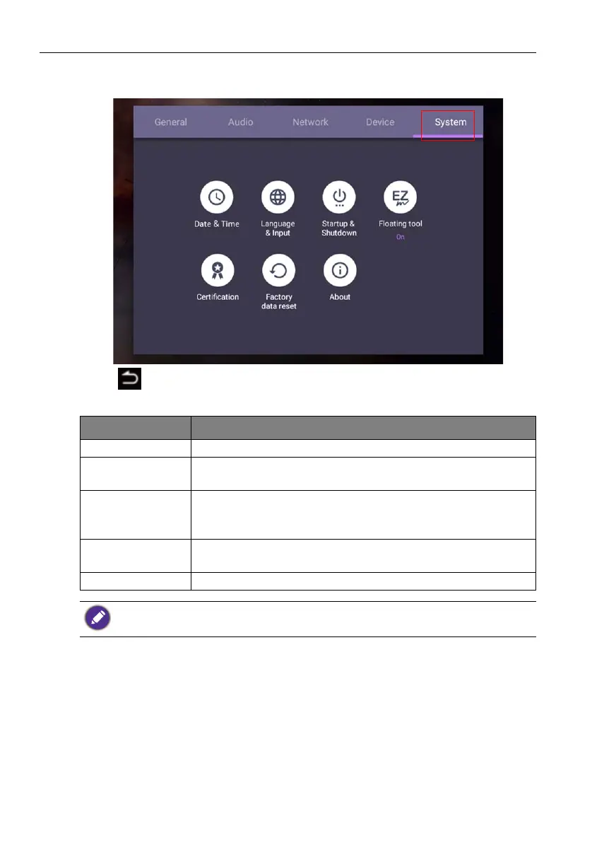On the home screen, select Setting > System to enter system settings.