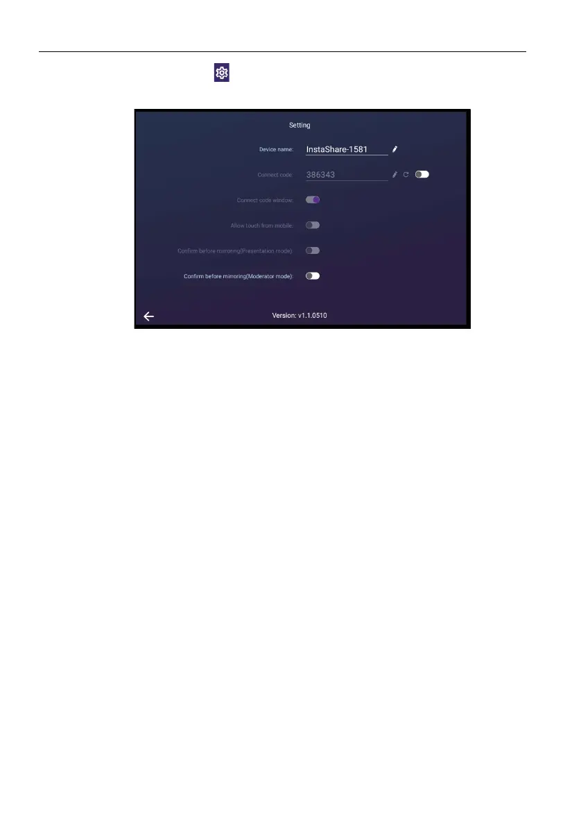 settings for InstaShare, such as the InstaShare ID name, connect code, or mirroring