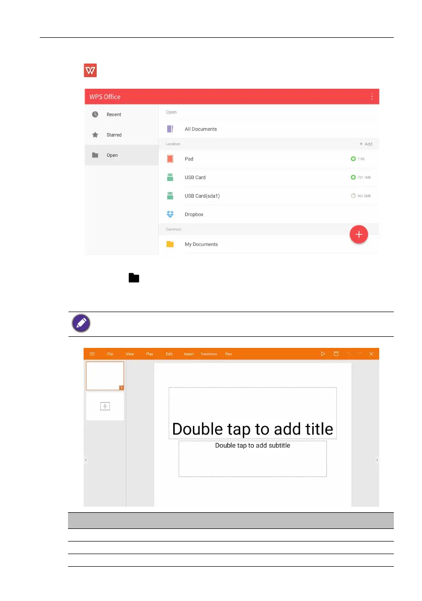 1. Tap Open ( ) on the left panel to browse and open a file located in either the dis-