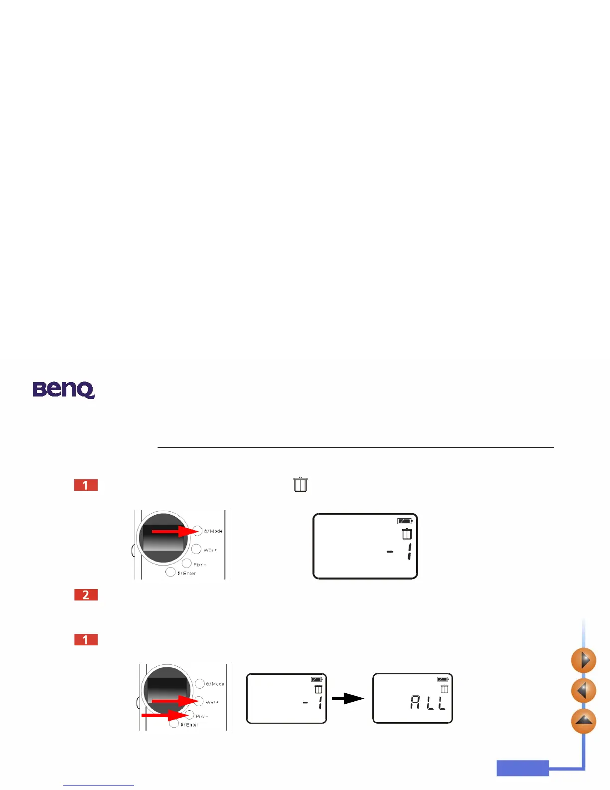 Press the “Power/ Mode” button 4 times. The icon will appear on the status display. It indicates the camera is in Erase