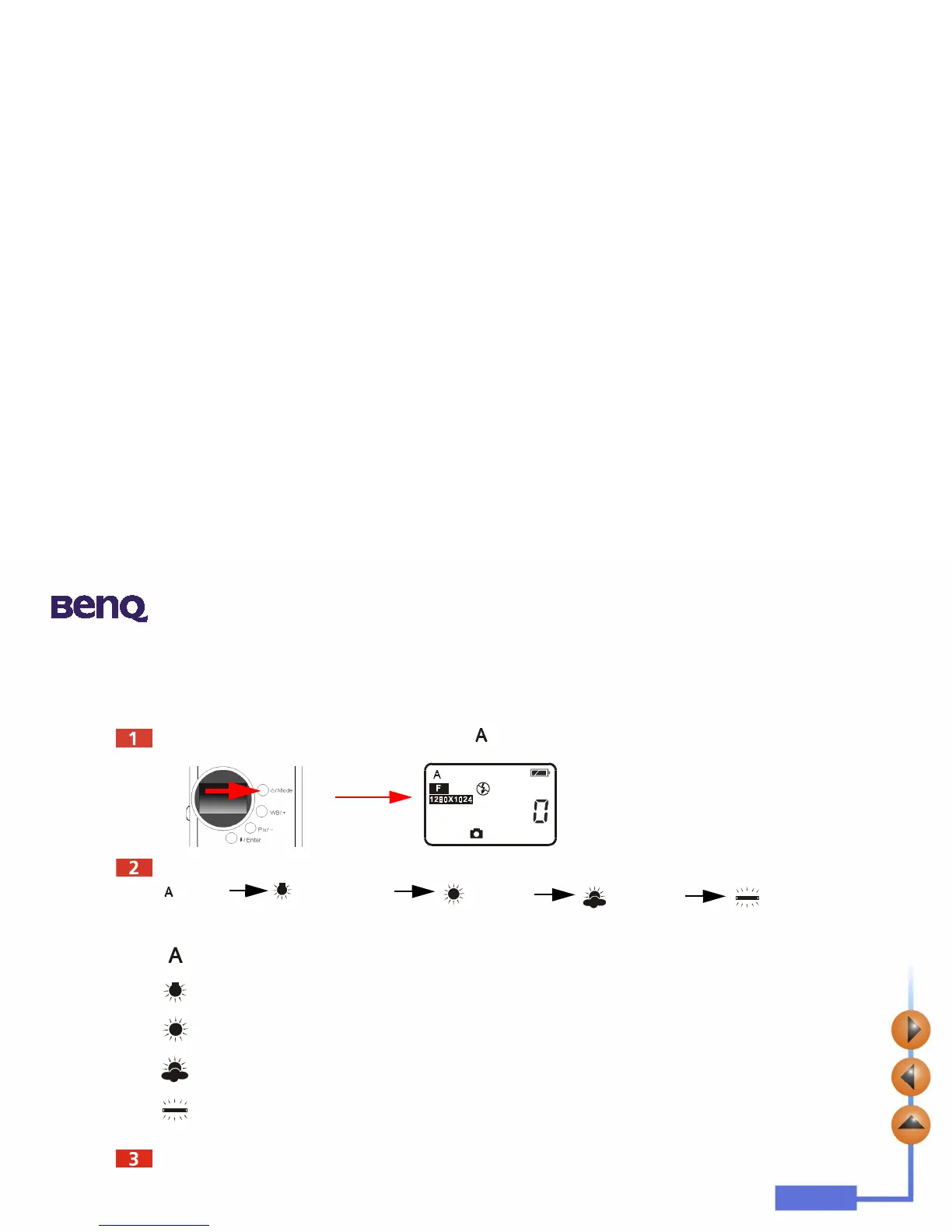Press the WB/ + button, the camera will beep as the white balance icon changes in the sequence as follow illustrated: