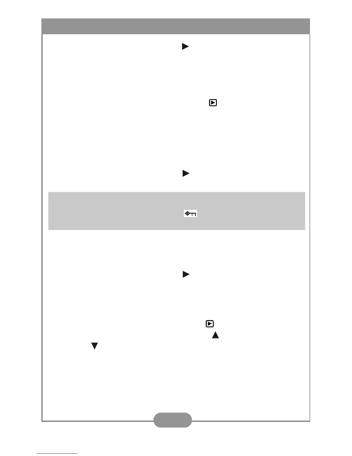 "Play" menu table. Use Up Direction Button ( ) and Down Direction Button