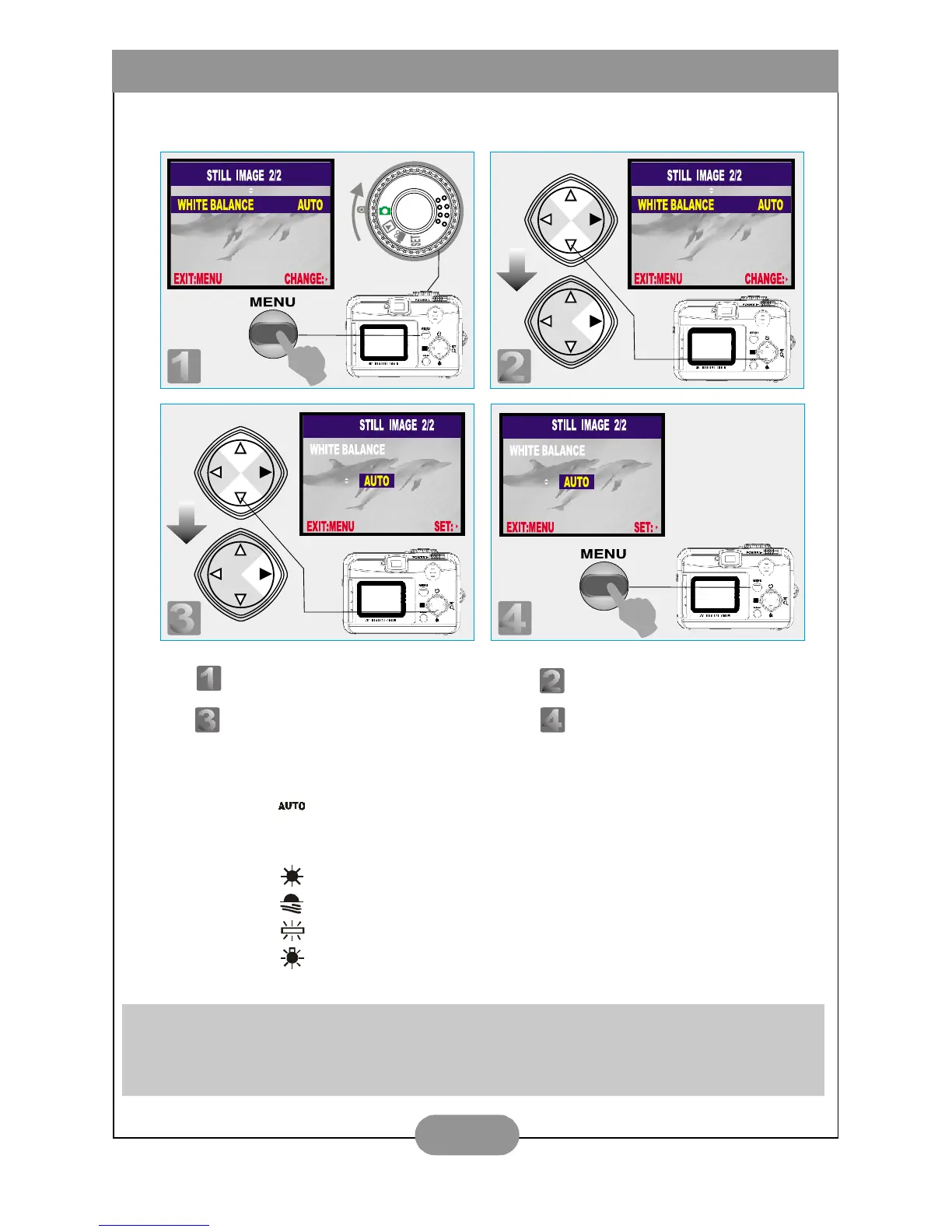 ( ) Auto White Balance: The camera will adjust the white balance by