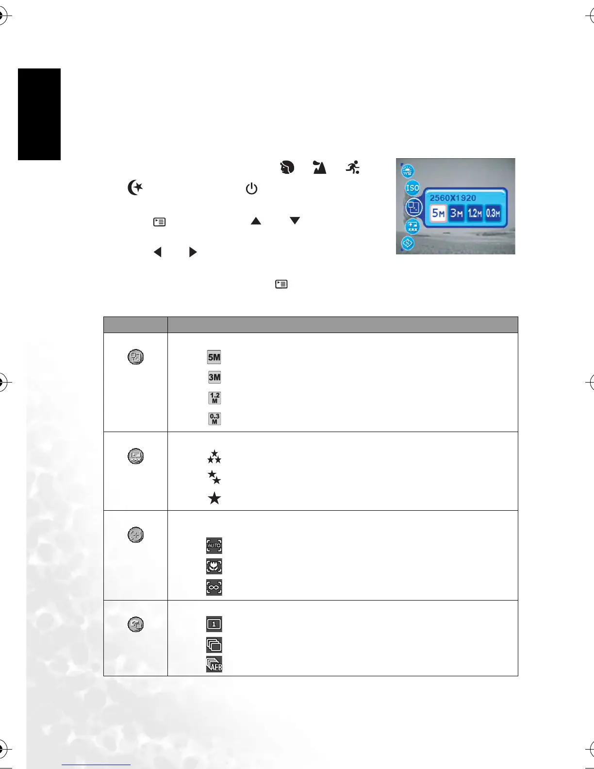 1. Rotate the mode dial to [A], [M], [ ], [ ], [ ] or