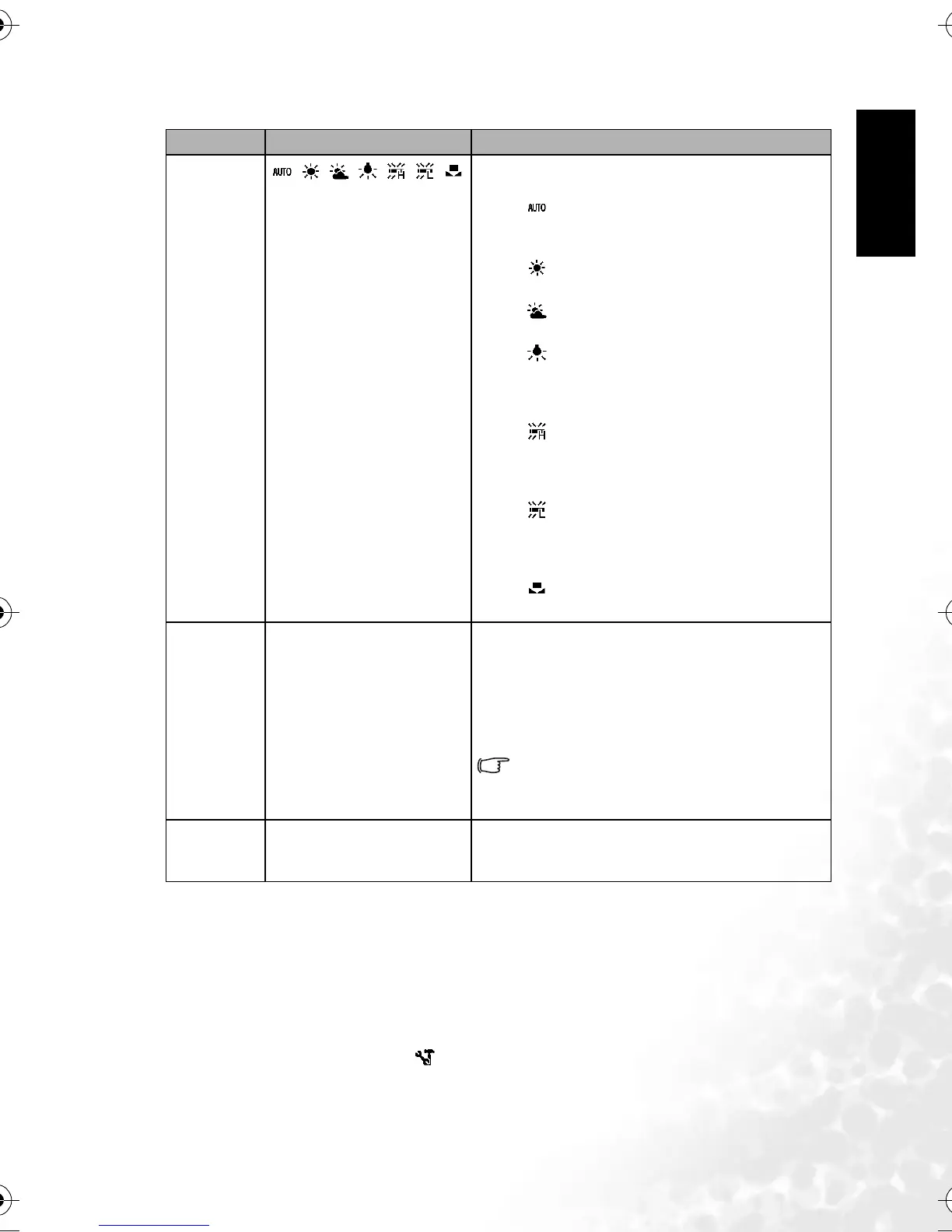 – : Adjust the white balance to match different