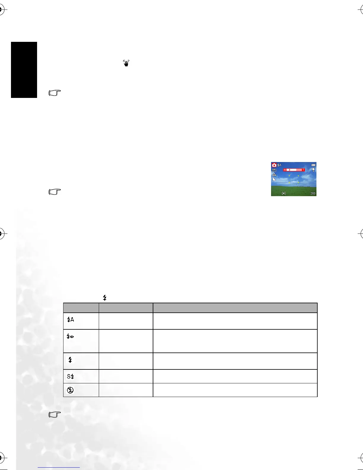 on the LCD screen to indicate the flash mode. The flash cannot be used when movie