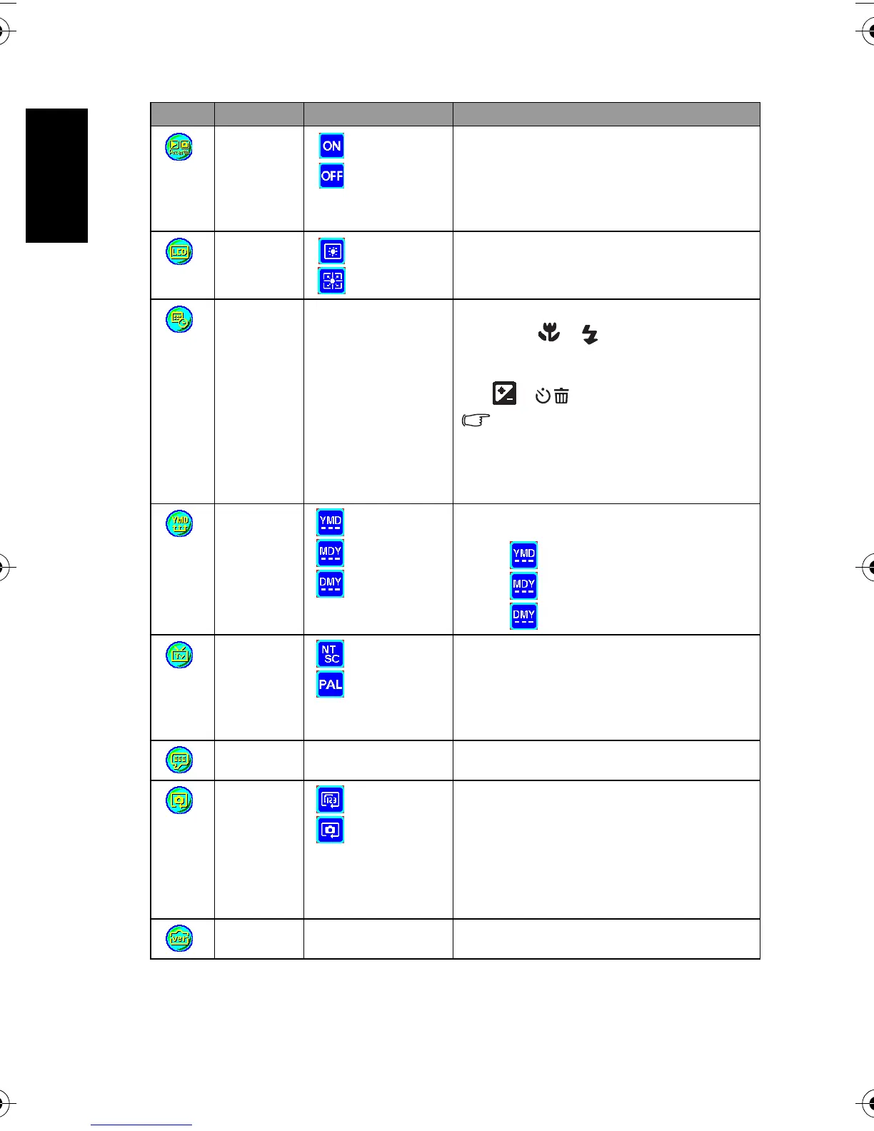 Allows you to set the brightness of the LCD monitor