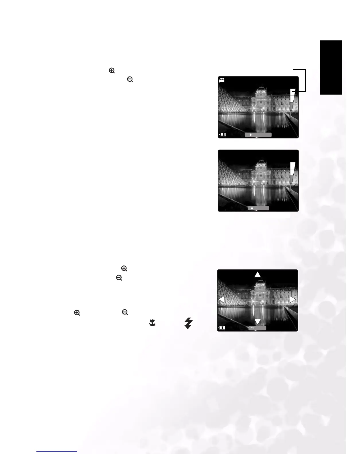 Four arrows appear in the display. Press zoom in