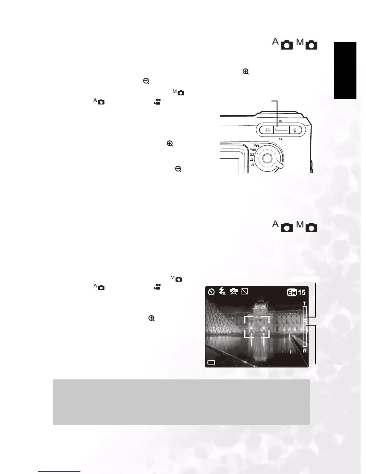 and wide-angle shots. The subject appears closer by pressing the button and appears